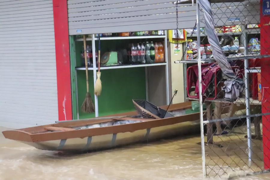 Người dân sử dụng thuyền để đi mua lương thực thực phẩm. Ảnh: ND