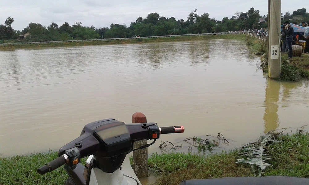 Sáng sớm 11-11, người dân đi ra đồng khi nước lũ đang rút dần, phát hiện bên con đường bê tông thuộc xã Đức Lĩnh có một chiếc xe máy, ví da, điện thoại và đôi giày.
