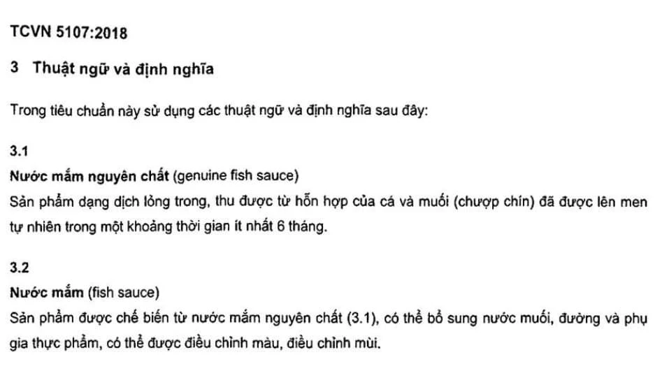 Tuy nhiên, mọi việc bắt đầu phức tạp khi tháng 5-2018, Bộ Khoa học và Công nghệ hủy hiệu lực thi hành của TCVN 5107:2003, thay bằng TCVN 5107:2018. Trong đó đưa thêm khái niệm mới "nước mắm nguyên chất" và thay đổi định nghĩa nước mắm là “sản phẩm được chế biến từ nước mắm nguyên chất, có thể bổ sung nước muối, đường, phụ gia thực phẩm, có thể được điều chỉnh màu và mùi”.