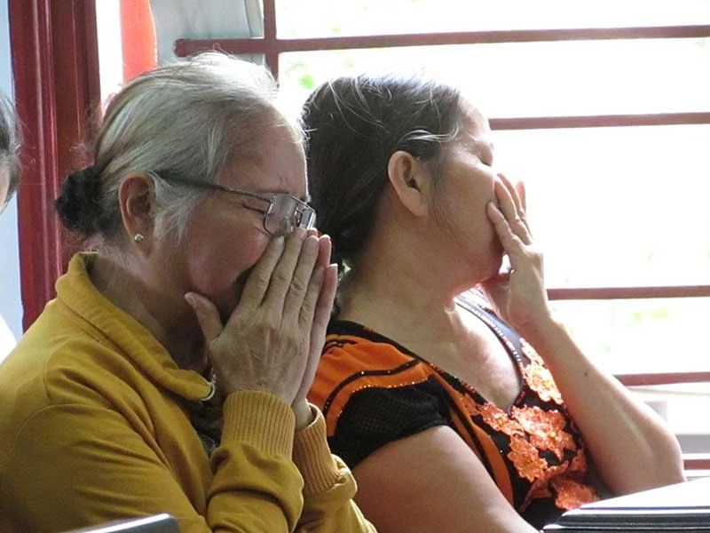 Bà ngoại và mẹ vợ bị cáo ôm mặt khóc, xin cho Hồ được sống. Ảnh: NN