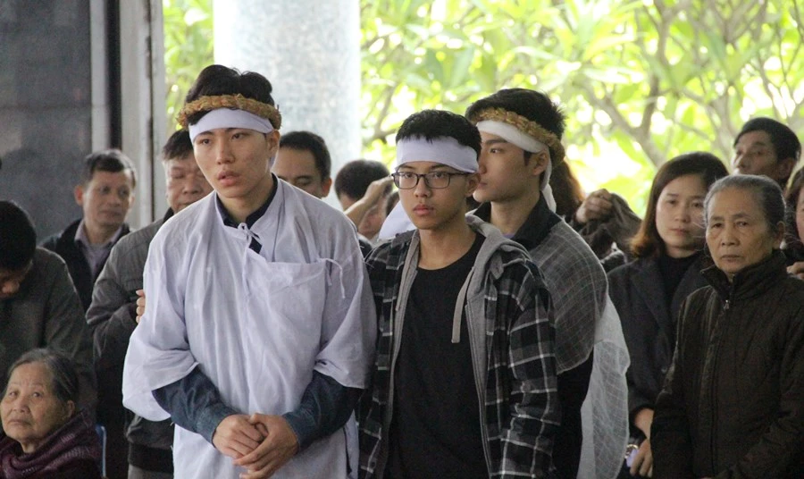Con trai lớn của đại tá Hoàng Mai Vui, Hoàng Mai Trung Hiếu thất thần trước linh cữu người cha và những dự định chia sẻ niềm vui lên đường nhập học Học viện Y học cổ truyền Việt Nam thì cha của anh đã mãi mãi ra đi. Ảnh: ĐẶNG TRUNG