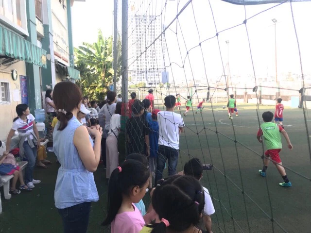 Lực lượng cổ động viên đông đảo nhí nhảnh ghi lại giây phút đáng nhớ với các cầu thủ nhí ra trận đều đặn ở mỗi cấp học.
