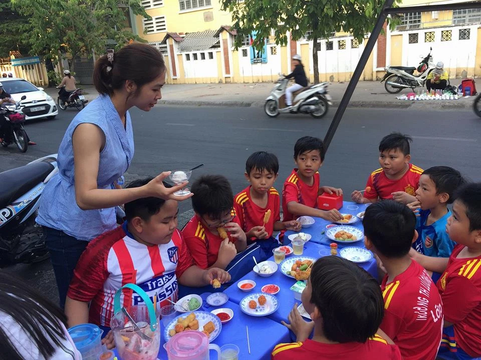 Cô hứa với cầu thủ nhí nếu vô địch sẽ đãi cả lớp một chầu cá viên chiên vui vẻ tới bến và cứ mong mất tiền.
