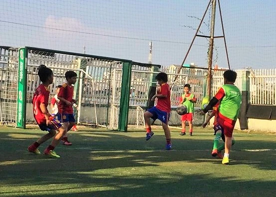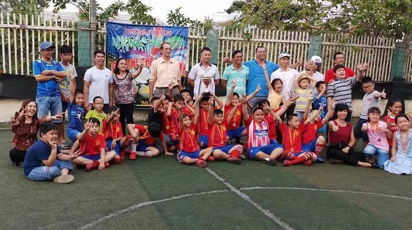 Năm nào cũng vậy, các thầy trong tổ thể chất của Trường Tiểu học Lương Thế Vinh đều đặn tổ chức các sân chơi thể thao cho học sinh, từ bóng rổ, võ thuật, bơi, Aerobic,… cho đến bóng đá quyến rũ đông đảo cổ động viên “cây nhà lá vườn”.