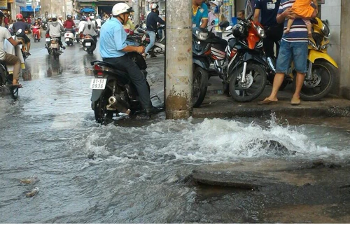 Nước máy phun như thác gây ngập đường