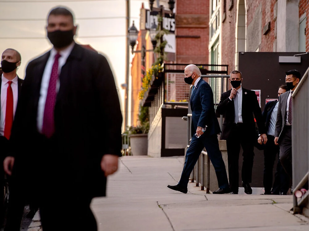 Ứng viên Joe Biden (giữa) xuất hiện bên ngoài nhà riêng ở bang Delaware, Mỹ hôm 10-12. Ảnh: REUTERS