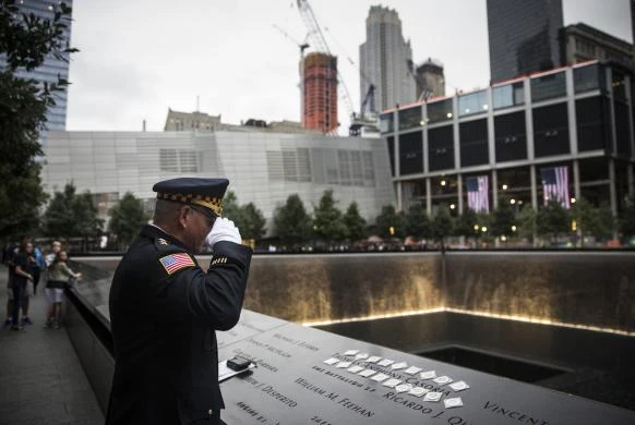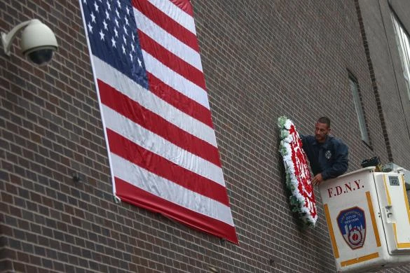 Sam Pulia, thị trưởng thành phố Westerchester, IL, và là một cựu sĩ quan cảnh sát của thị trấn cúi chào trước dòng tên của người em trai đã mất của ông là lính cứu hỏa New York Thomas Anthony Casoria, người đã thiệt mạng trong vụ việc 11-9.