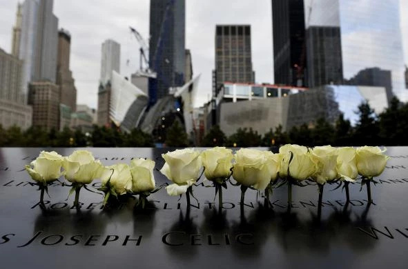 Hoa hồng trắng tại khu vực tưởng niệm 11-9 ở New York sáng 11-9-2014