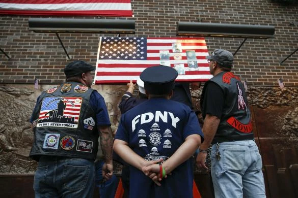 Nhân viên cứu hỏa thành phố Jersey tham dự buổi lễ tưởng niệm 9-11