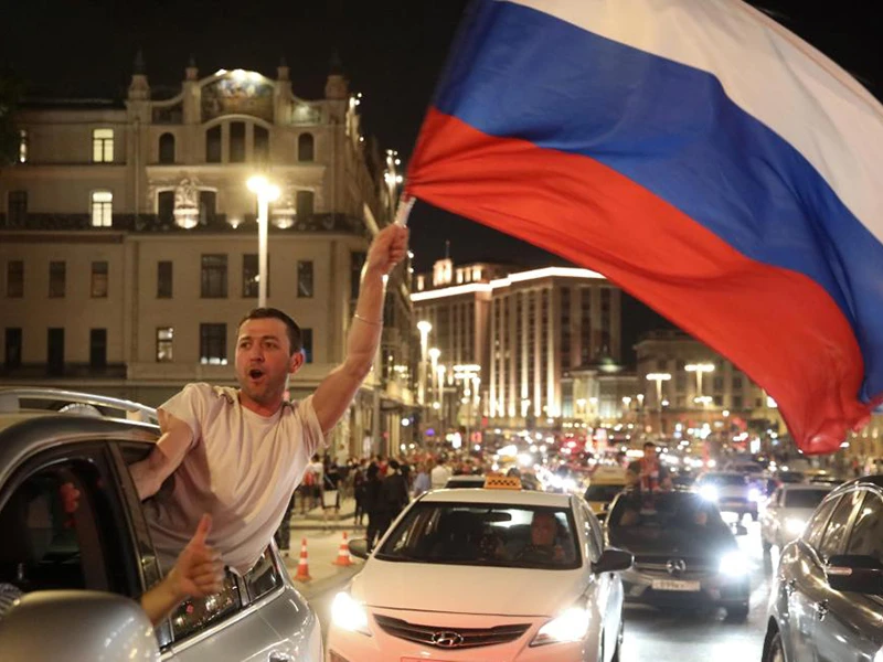 Sau trận thắng Ai Cập, nước Nga như có một cơn bão giật quét qua khi người hâm mộ đua nhau ra đường ăn chơi nhảy múa. Họ trèo lên xe hơi và làm đường phố tắc nghẽn để chung vui cùng đội nhà có khởi đầu tốt nhất của mình trong lịch sử World Cup.