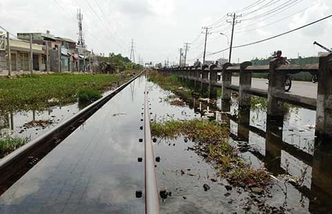 Theo ông Bình, đoạn đường sắt nói trên có độ dốc khá cao, nhất là đoạn từ Tô Ngọc Vân đến cầu Gò Dưa. “Khi mưa to, nước chảy từ hướng Thủ Đức về cầu Gò Dưa rất mạnh. Do nhiều đoạn mương thoát nước dọc đường tàu bị lấn chiếm, lấp bít nên nước tràn lên đường ray, cuốn trôi nhiều đất đá khiến các thanh tà vẹt bị rỗng chân... Mỗi khi có tàu chạy qua, tà vẹt võng xuống thấy rõ. Tình trạng này gây mất an toàn cho các chuyến tàu khi chạy qua khu vực này” - ông Bình bày tỏ.