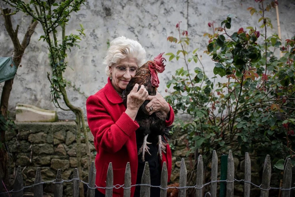 Bà Corine Fesseau và gà trống Maurice của mình. Ảnh: THE NEW YORK TIMES