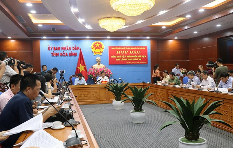 Chiều 17-10, tỉnh Hòa Bình đã tổ chức họp báo về vụ nước sạch sông Đà nhiễm dầu thải đổ trộm.