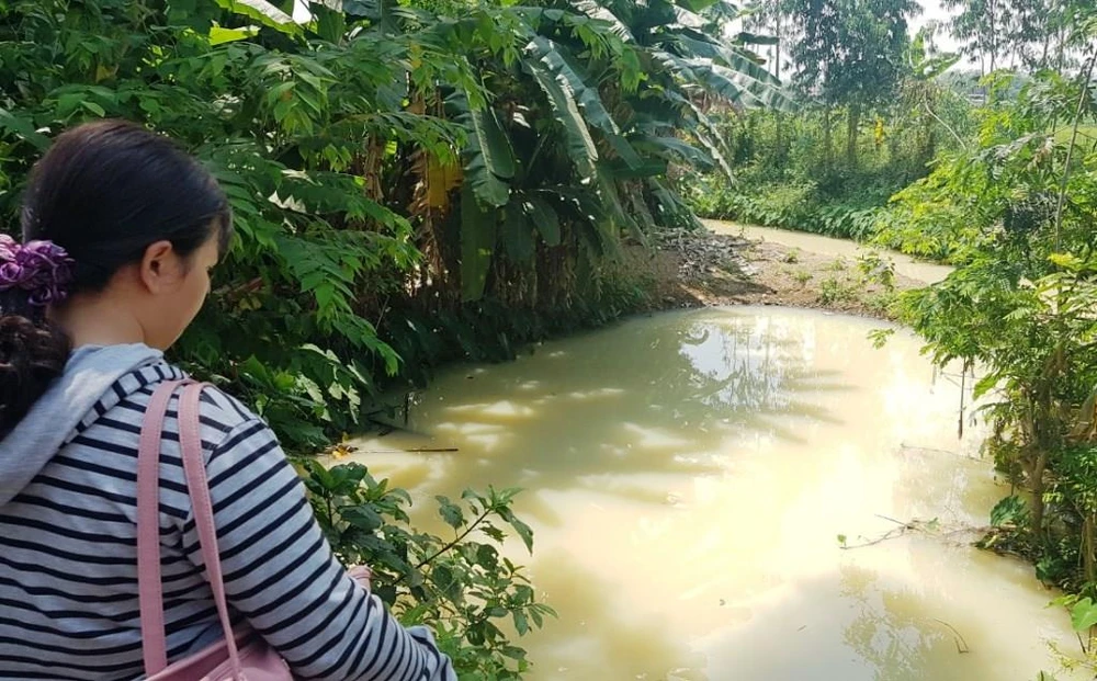 Nước có màu đục và bốc mùi thuốc trừ sâu xuất phát từ khu công nghiệp. Ảnh: HẢI HIẾU