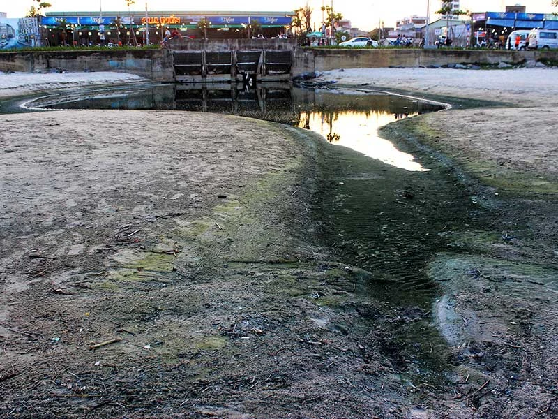 Tại khu vực bãi biển Mân Thái, Thọ Quang, cống xả cũng đổ thẳng ra bãi biển.