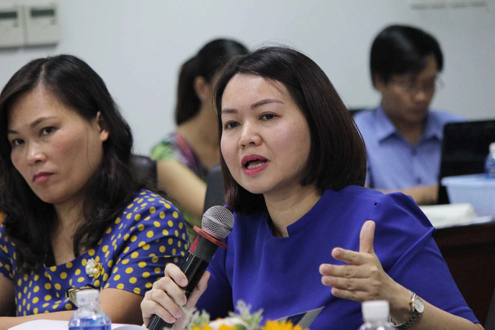 Bà Trần Việt Nga – Phó Cục trưởng Cục An toàn thực phẩm, Bộ Y tế trao đổi tại tọa đàm. Ảnh: HOÀNG GIANG