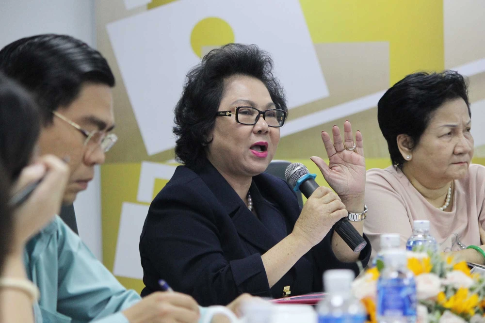 Bà Lý Kim Chi – Chủ tịch Hội lương thực - thực phẩm TP.HCM trao đổi tại tọa đàm. Ảnh: HOÀNG GIANG