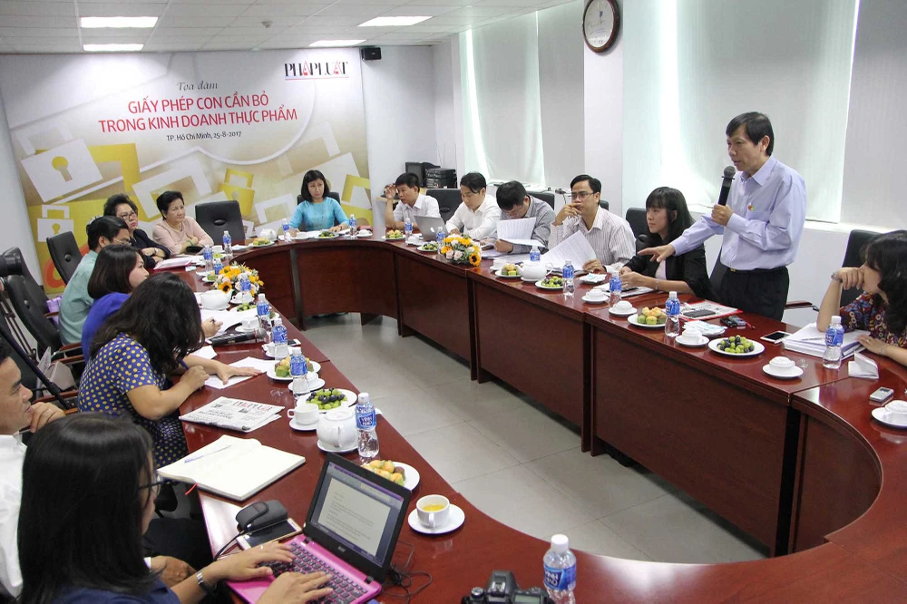 Toàn cảnh buổi tọa đàm “Giấy phép con cần bỏ trong kinh doanh thực phẩm” do báo Pháp Luật TP.HCM tổ chức, sáng 25-8. Ảnh: HOÀNG GIANG