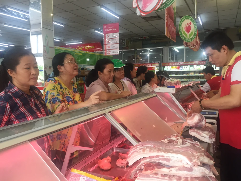 Đại diện Vissan cho biết là ngày đầu tiên có một số điểm bán lượng khách đến mua sắm tăng cao, tính chung lượng thịt heo tiêu thụ tăng 20-30% so với ngày thường.