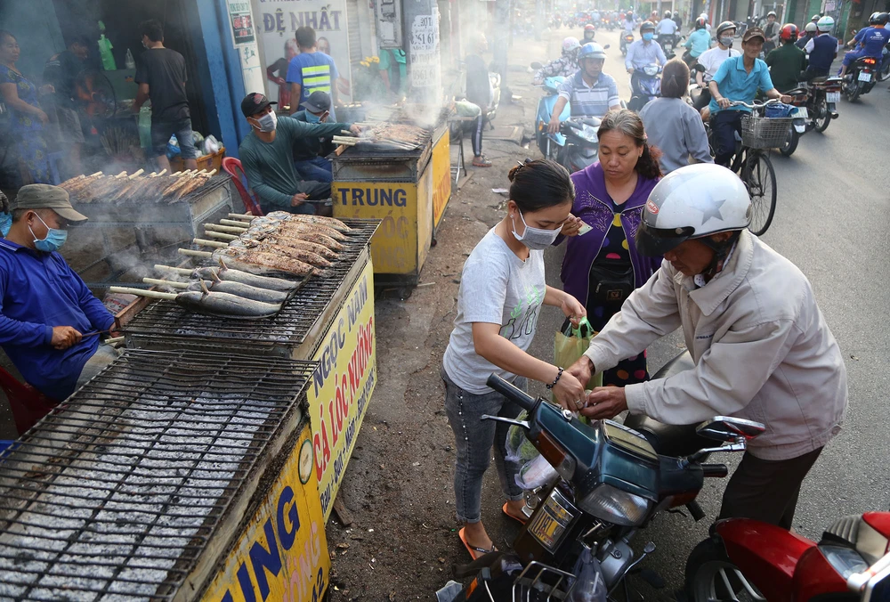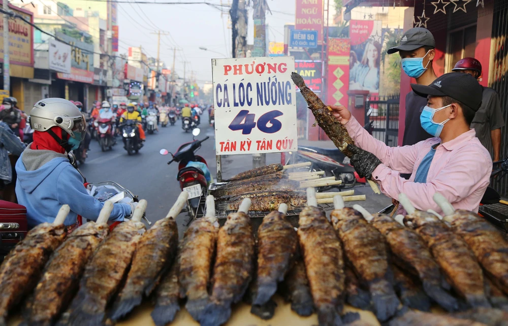 Trong ngày vía Thần Tài, ngoài vàng, vịt quay, hoa quả thì cá lóc nướng mía được người dân Sài Gòn quen chọn tại con đường này.
