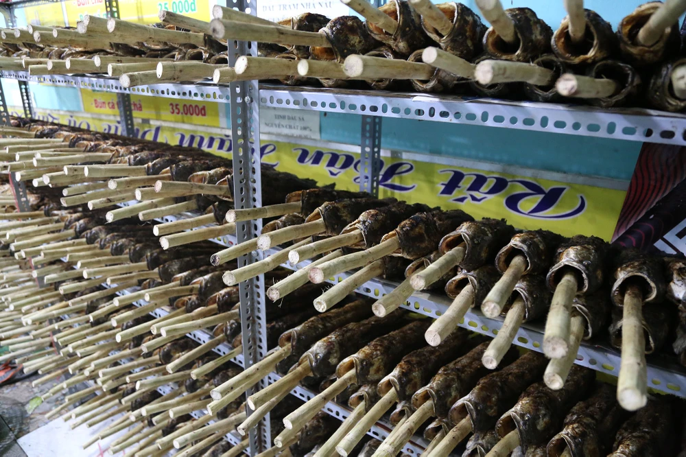 Suốt một đoạn đường, cảnh mua bán cá lóc nướng diễn ra hối hả và nhanh chóng.