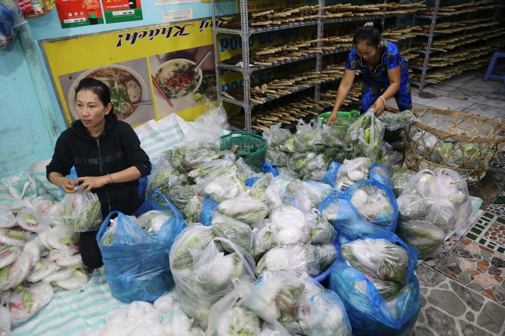 Cá lóc nướng xong được phủ một lớp mỡ hành, đậu phộng rang sau đó cuốn cẩn thận vào giấy bạc giao cho khách.