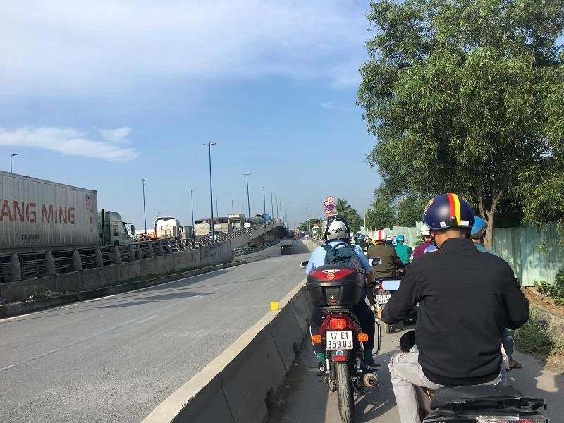 Làn xe máy hướng sang đường Nguyễn Thị Định, quận 7.