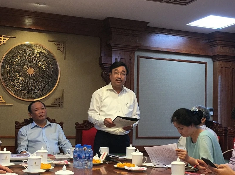 Ông Hoàng Lê Bách, Tổng Giám đốc NXB Giáo dục Việt Nam, thông tin với báo chí chiều 21-9