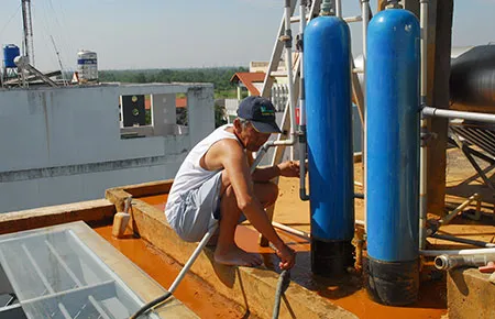 Tương tự, anh Nguyễn Phước Tài (P2-06, khu dân cư Phi Long 5) cũng phải bỏ hơn 20 triệu đồng để khoan giếng và lắp hệ thống lọc. Dù vậy gia đình vẫn phải mua thêm nước đóng bình để nấu ăn và uống. “Chúng tôi đã nhiều lần kiến nghị chủ đầu tư hoàn thiện hạ tầng nhưng họ vẫn không thực hiện. Còn công ty cấp nước cho hay chỉ khi nào chủ đầu tư hoàn thành hạ tầng thì công ty mới gắn đồng hồ nước cho người dân được. Giờ chúng tôi chẳng biết đường đâu mà lần” - anh Tài bức xúc.