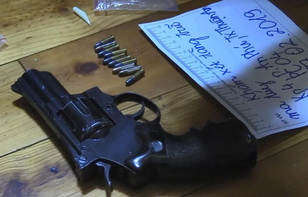 Khẩu súng và đạn thu giữ tại nơi ở của nhóm đối tượng này.