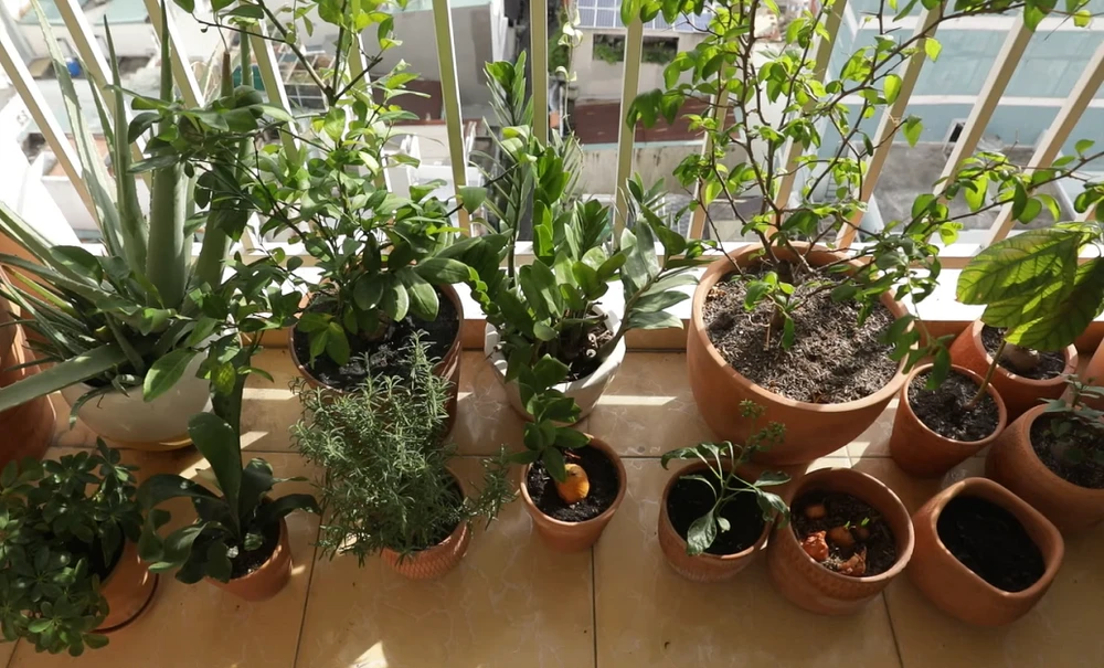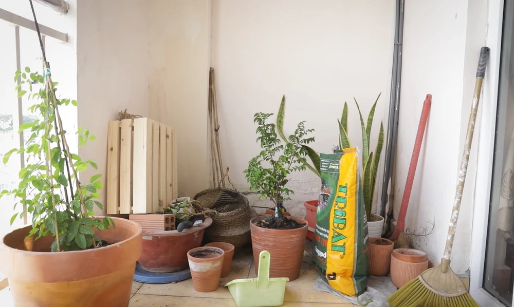 Sau khi TP.HCM thực hiện giãn cách, anh quyết định trồng cây để ban công đỡ trống trải và tận dụng khoảng không để có thể phóng tầm mắt ngắm nhìn thành phố. Lúc đó, ban công rộng khoảng 4 mét vuông chỉ có 1-2 chậu cây.