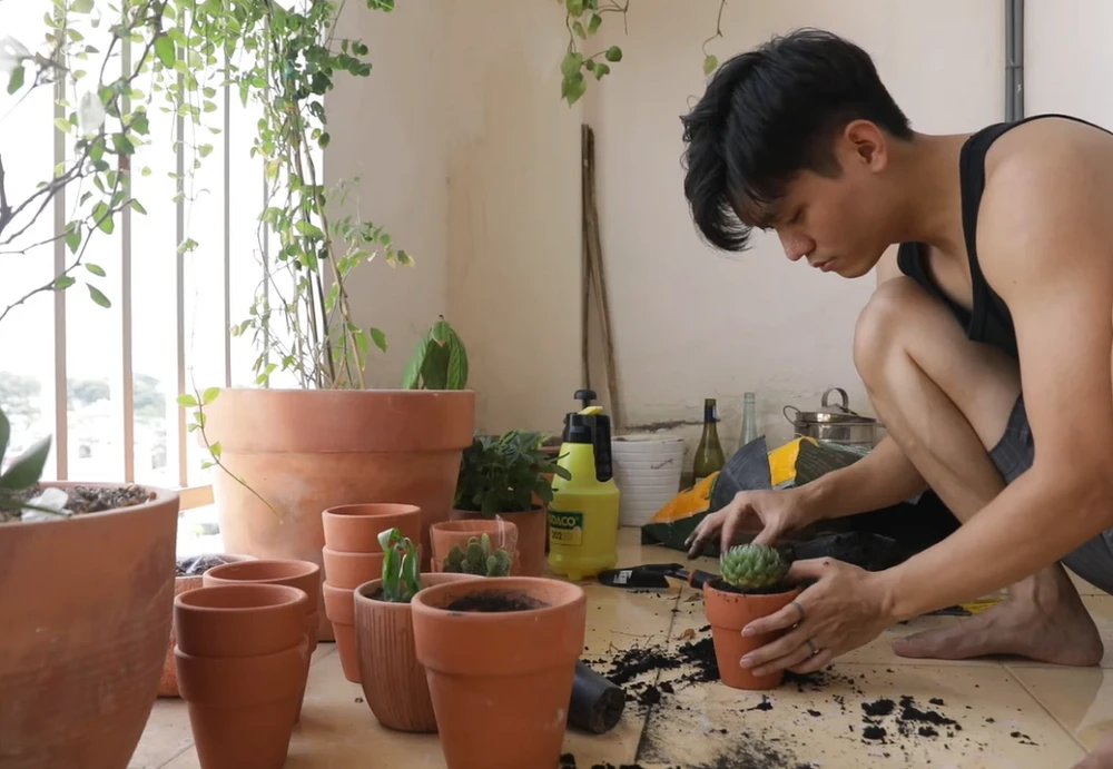 Bắt đầu trồng những chậu cây đầu tiên. Ảnh: NVCC