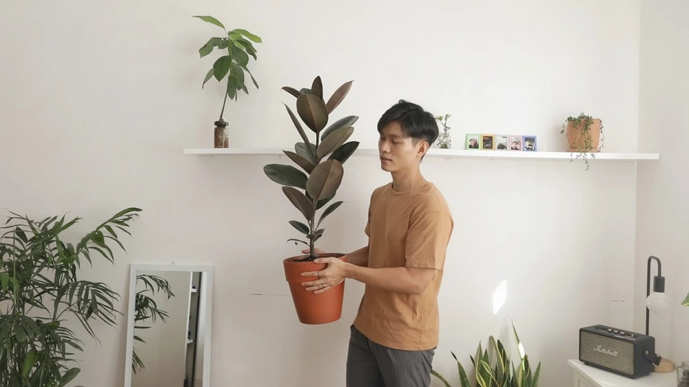 Trong nhà Mạnh Hà cũng trưng nhiều chậu cây.