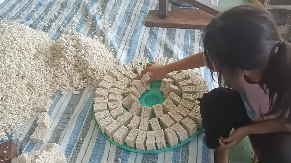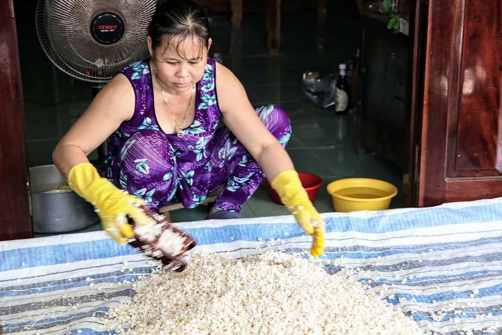 Dưới đây là một số hình ảnh của làng quê Ninh Thuận làm cốm ngày tết: