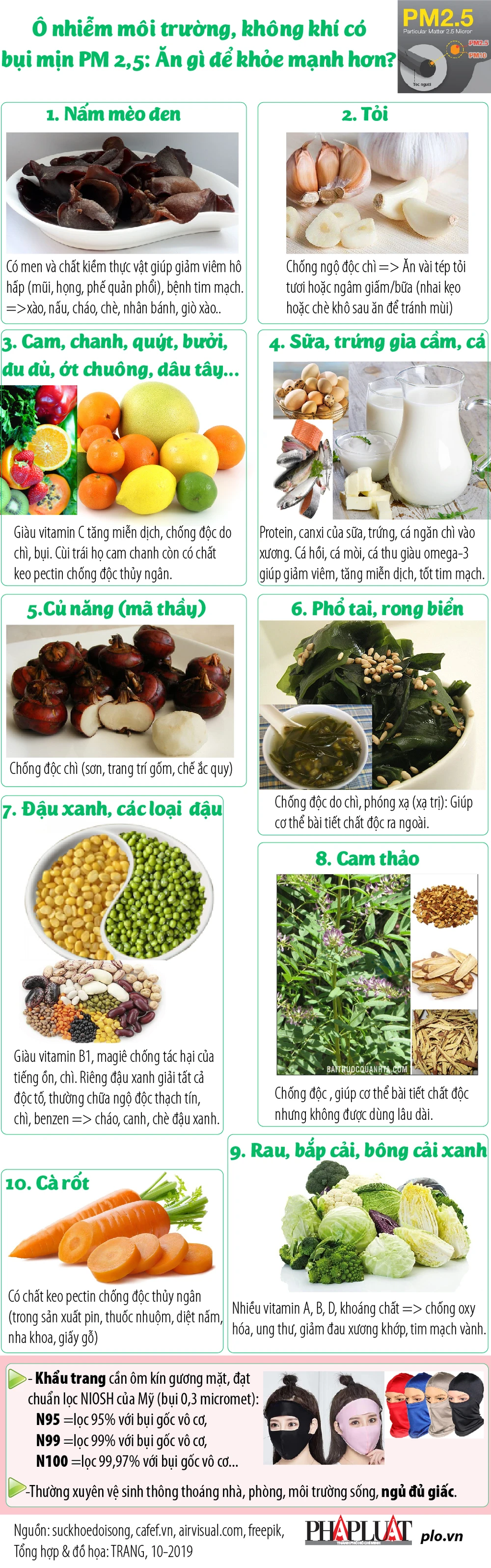 (PLO)- Gần đây, chất lượng không khí tại một số nơi không tốt, đặc biệt là bụi mịn PM10 hay PM2.5 có thể gây bệnh cho con người. Đông y và khoa học hiện đại lưu ý nên ăn uống như sau để khỏe mạnh hơn.