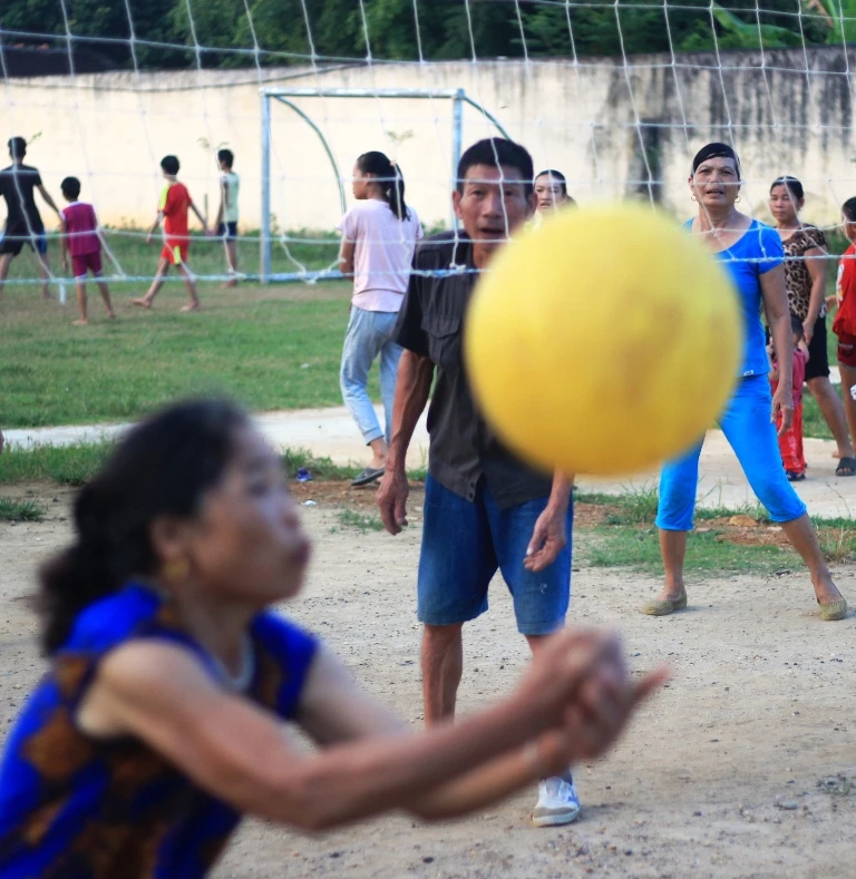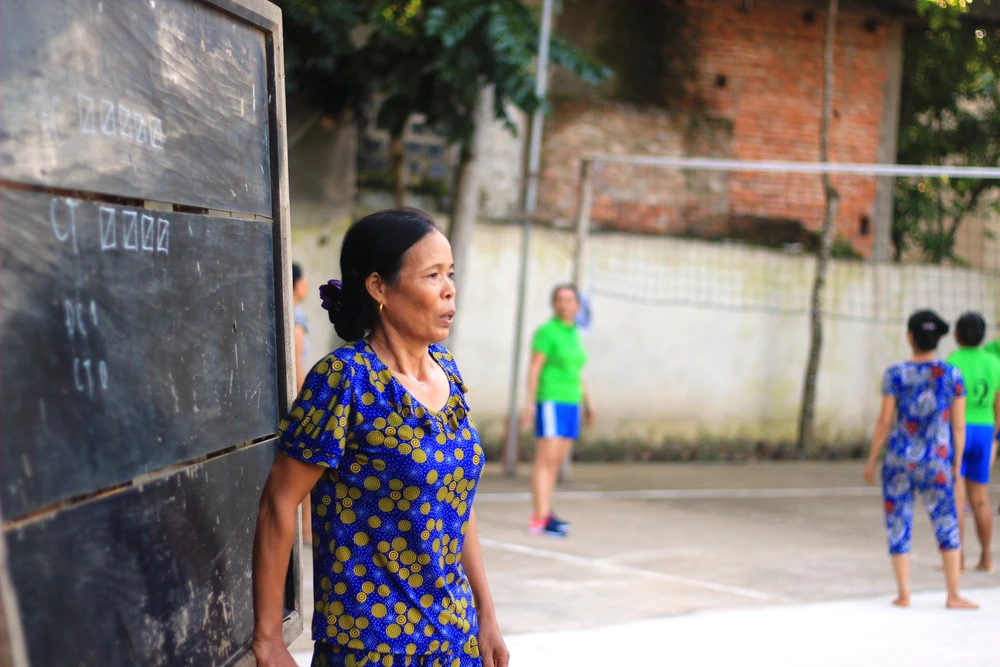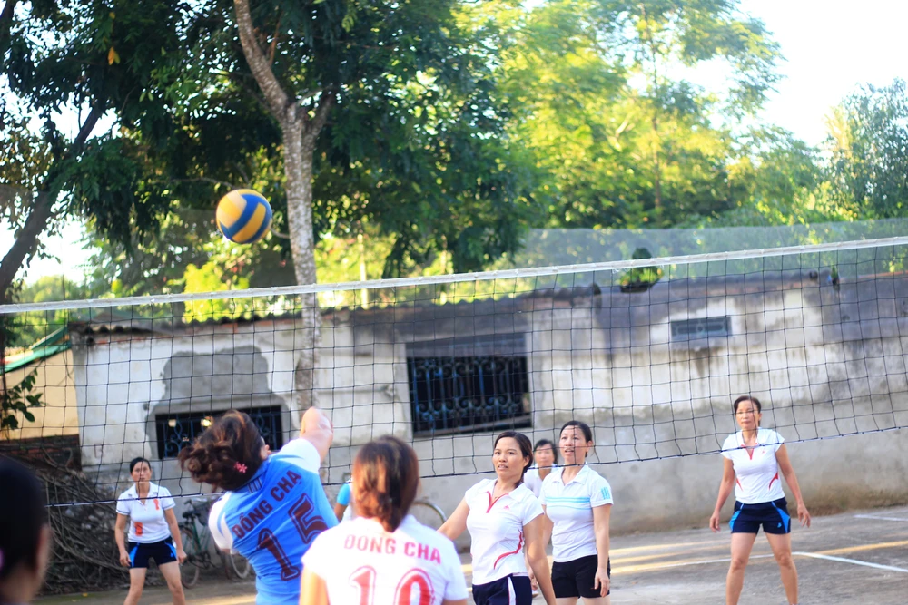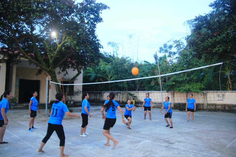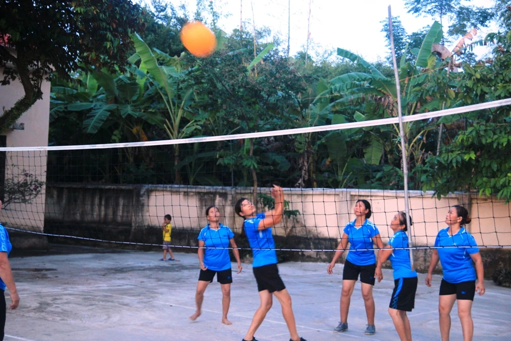 Cứ đều đặn, từ khoảng 17 giờ phụ nữ trong thôn dù đang làm gì cũng buông bỏ để ra sân bóng chuyền của nhà văn hóa, chia đội thi đấu. Những đội bóng chuyền của chị em như thế đã tồn tại ở các thôn, xã của huyện Cẩm Thủy từ gần 10 năm nay.