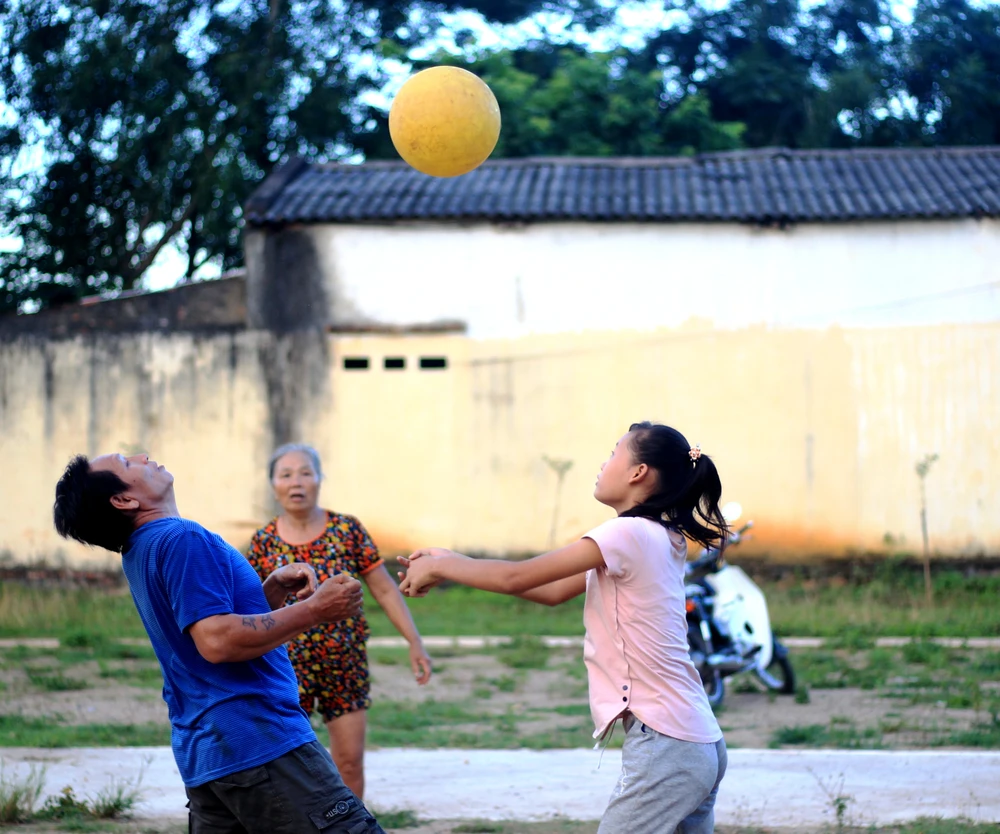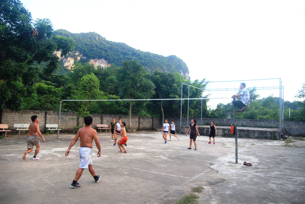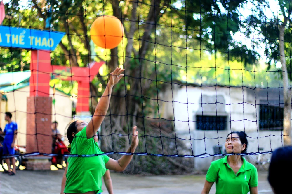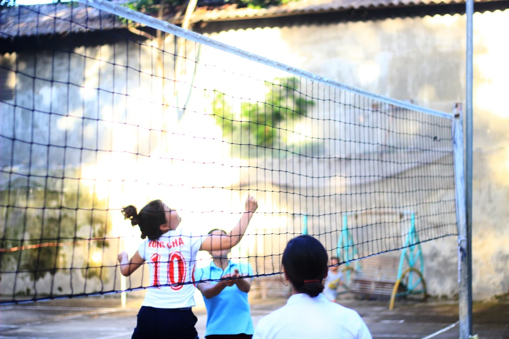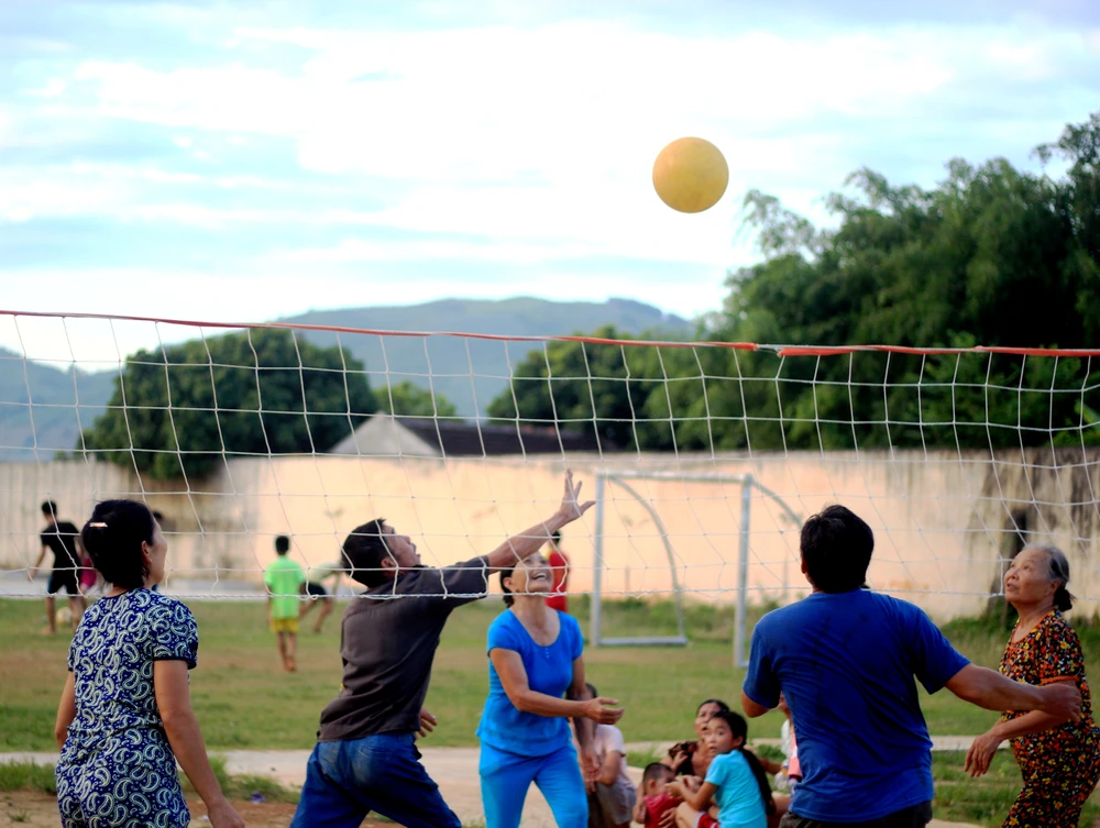 Cứ đều đặn, từ khoảng 17 giờ phụ nữ trong thôn dù đang làm gì cũng buông bỏ để ra sân bóng chuyền của nhà văn hóa, chia đội thi đấu. Những đội bóng chuyền của chị em như thế đã tồn tại ở các thôn, xã của huyện Cẩm Thủy từ gần 10 năm nay.