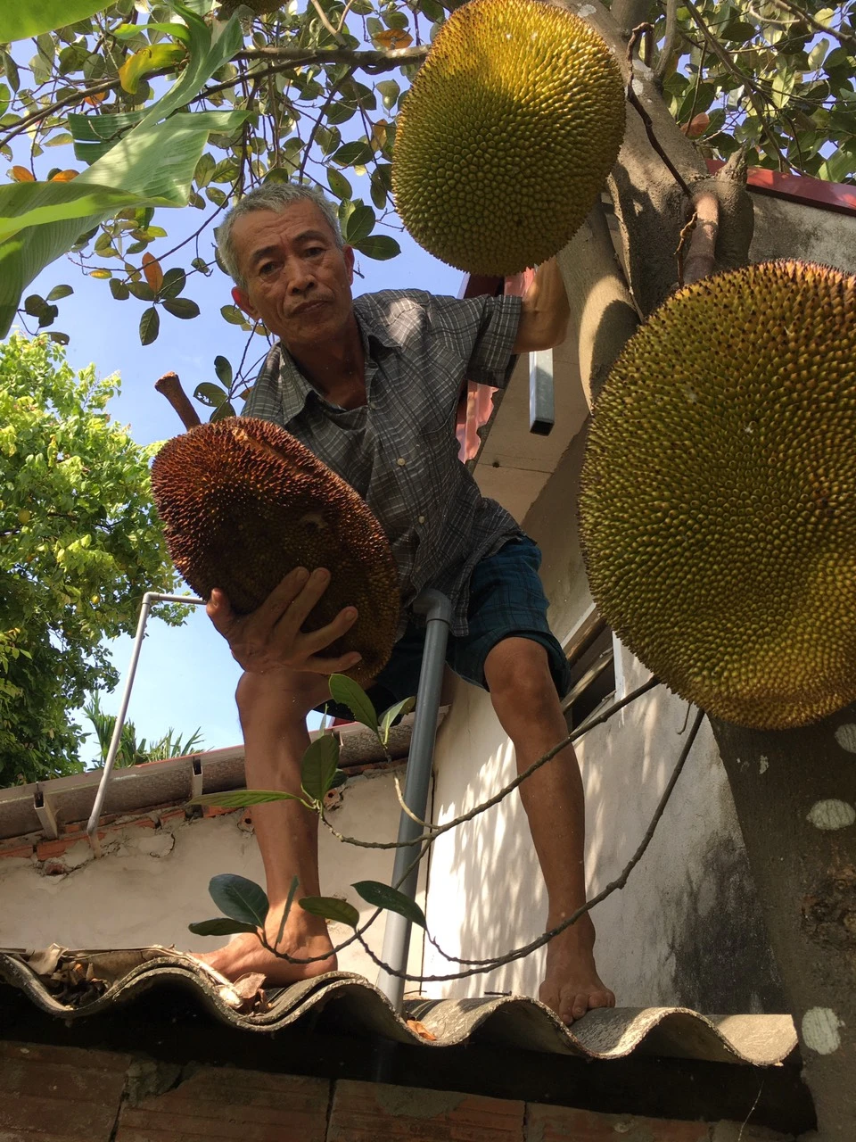 Một người nghèo ở nông thôn đang tìm kiếm thu nhập trong vườn nhà. Ảnh: PL