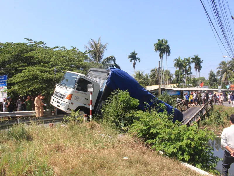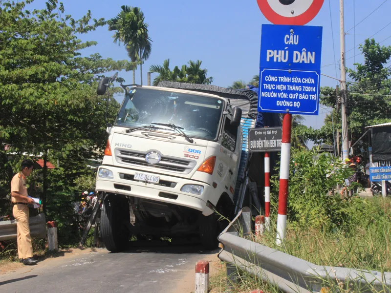Trưa 21-2, xe tải 71C-044.80 có tải trọng khoảng 15 tấn, do tài xế Châu Ngọc Khoa (35 tuổi, ngụ thị trấn Giồng Trôm, huyện Giồng Trôm, Bến Tre) điều khiển, chở dừa khô và thức ăn gia súc qua cầu Phú Dân hướng từ xã Hữu Định, huyện Châu Thành đi TP Bến Tre.