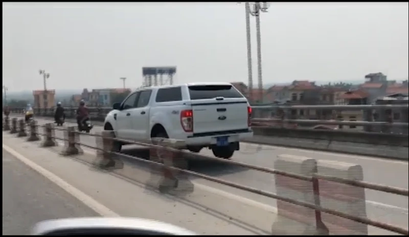 Cụ thể, theo ghi nhận qua thiết bị camera giám sát hành trình trên ô tô được người dân phản ánh trên mạng xã hội Facebook ngày 29-5, clip ô tô biển xanh 34A-001.86 đi vào làn đường dành cho xe máy trên cầu Thanh Trì (Hà Nội).