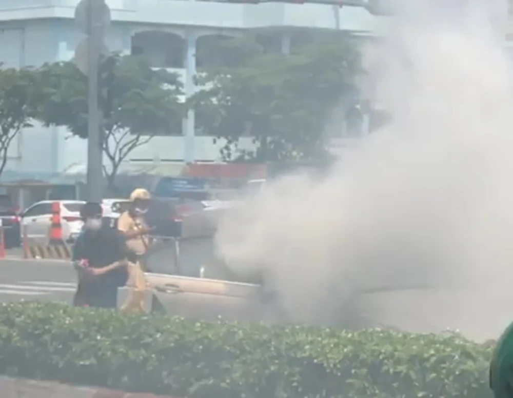 Khi vừa qua giao lộ Phạm Văn Đồng- Phan Văn Trị (quận Gò Vấp, TP.HCM) khoảng chục mét thì phần đầu bốc khói dữ dội.