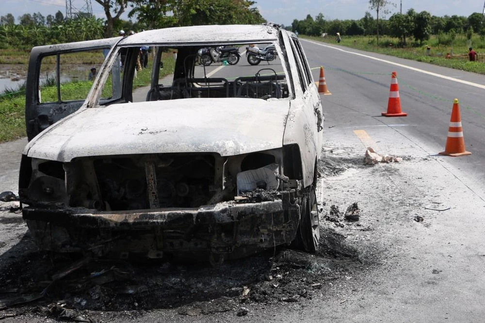 Ngày 05-10, trên tuyến quốc lộ 61C (đoạn qua ấp Nhơn Thuận 1A, xã Nhơn Nghĩa A, huyện Châu Thành A, tỉnh Hậu Giang) người dân phát hiện một chiếc xe ô tô 7 chỗ bị cháy trơ khung.