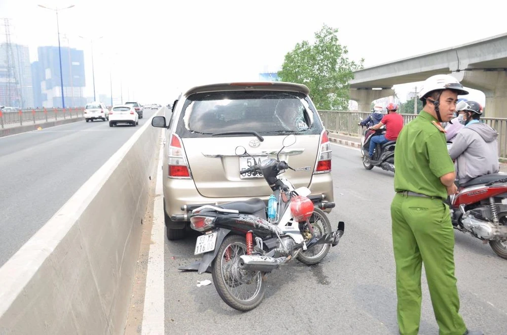 Trên cầu Sài Gòn sáng 3-5 xảy ra một vụ tai nạn giao thông khiến 1 phụ nữ bị thương nặng.