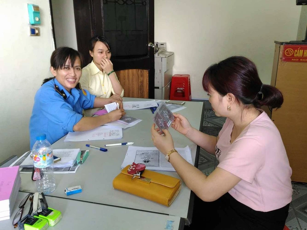 Người dân đến làm thủ tục để được cấp thẻ xác nhận giảm giá vé qua trạm Bến Thủy 1 và Bến Thủy 2.