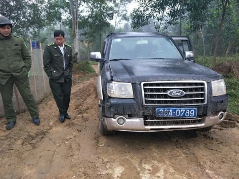 Trong qua trình truy đuổi, tài xế đã cho xe tông vào ô tô 38A-0789 của Đội Kiểm lâm cơ động khiến xe hư hỏng nặng.