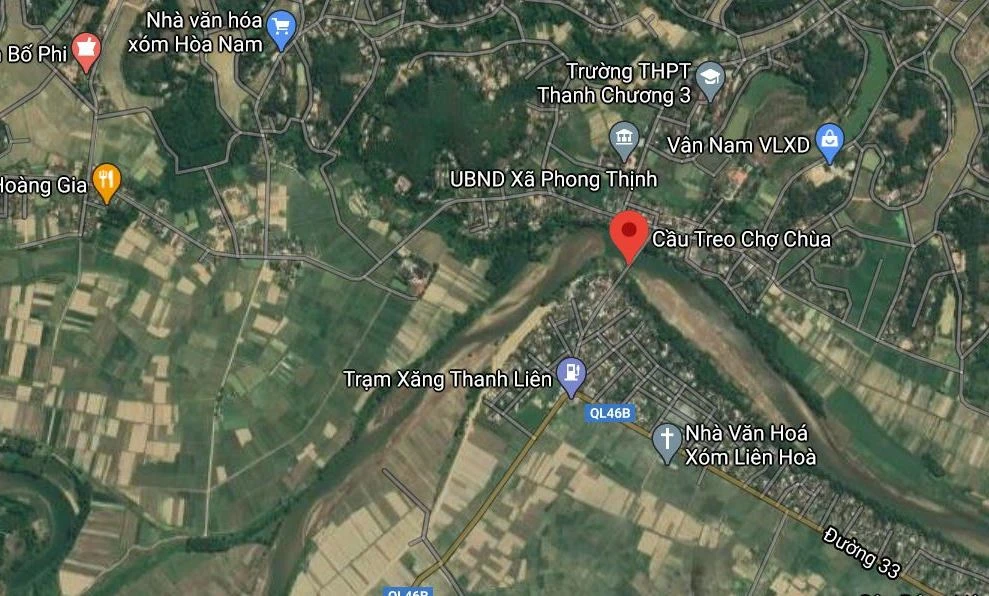 Vị trí cầu treo Chợ Chùa cách TP Vinh khoảng 60km.