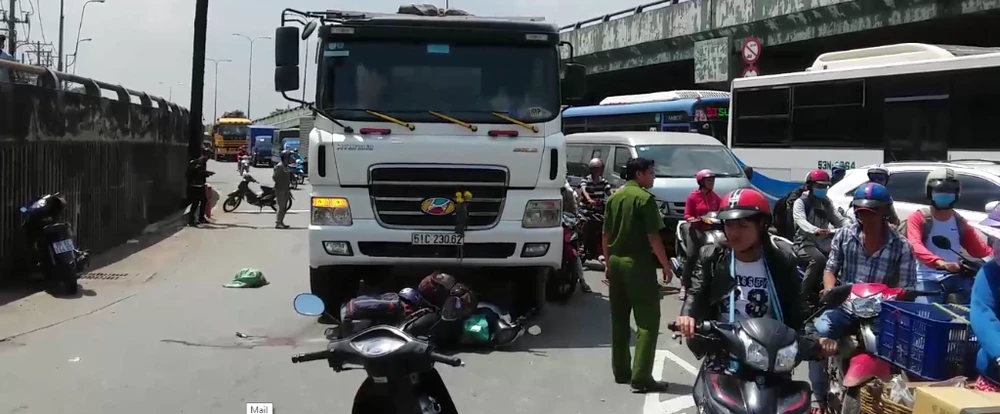 Khoảng 10 giờ trưa 8-8, xe ben 51C-23062 chạy trên quốc lộ 1 hướng cầu vượt trạm 2 đi Sóng Thần.