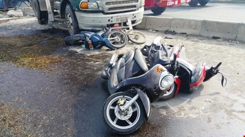 Tại hiện trường, 6 chiếc xe gắn máy bị hư hỏng nặng, trong đó 3 chiếc hư hỏng hoàn toàn; nhiều bộ phận văng tung tóe, dầu nhớt chảy lênh láng trên mặt đường; những phiến bê tông phân cách bị húc văng, vỡ nát.