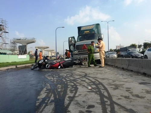 7 giờ sáng, ngày 25-12, xe ô tô đầu kéo chở bồn gas lưu thông trên xa lộ Hà Nội theo hướng từ quận Thủ Đức về vòng xoay Hàng Xanh. Khi vừa đổ dốc cầu Rạch Chiếc (quận 2, TP.HCM) đoạn cách cầu vượt Cát Lái A khoảng 500m thì mất lái, tông qua dải phân cách bê tông và lao sang làn đường xe máy, húc, cuốn vào gầm nhiều xe máy đang dừng chờ đèn đỏ.