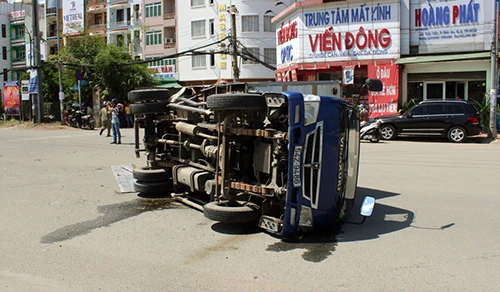 Nhiều nhân chứng cho biết, chiếc ô tô đã đâm mạnh vào hông phải xe tải dẫn đến sự cố. Cú va chạm làm xe tải trược dài một đoạn, lật nhào xuống đường.
